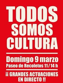 Los socialistas madrileños y sus juventudes, como hemos hecho desde un principio, y ahora con más impulso que nunca, apoyamos las reivindicaciones de la Plataforma en Defensa de la Cultura, tras una jornada que se puede calificar de rotundo éxito para el mundo de la cultura en nuestro país.